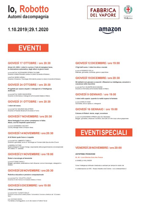 Nell’ambito della mostra, è altresì possibile assistere a un ciclo di conferenze intitolato “Quattro chiacchiere di robot”, che si terranno ogni giovedì sera. I prossimi appuntamenti sono, in particolare, i seguenti: